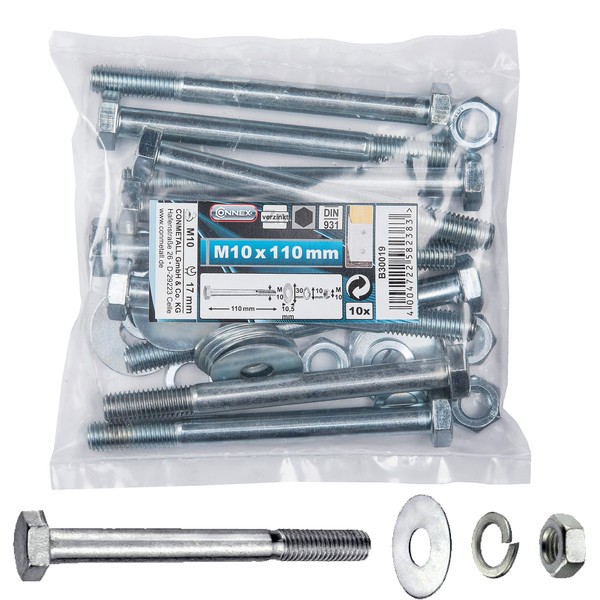- Product details: drive: hexagon socket | screw size: M10 x 110 mm | surface: galvanized | contents: 10 x hex bolt, 10 x washers, 10 x spring washers, 10 x hex nuts