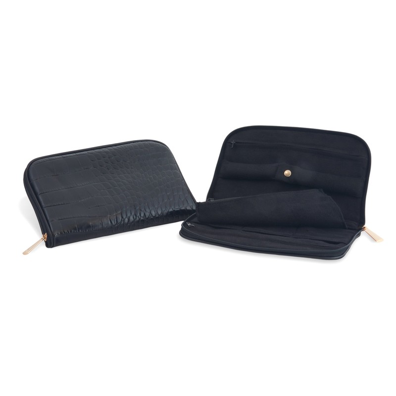 Connoisseurs Leather Jewelry Carrying Clutch, Black