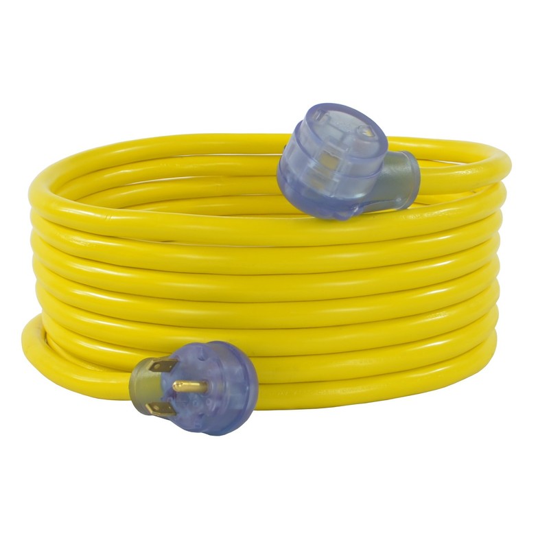 This extension cord allows for power transference from a standard RV 30-Amp outlet to a standard RV 30-Amp inlet. Jacket Type: STW (weather tolerance and extra heavy-duty usage) Limited 1-year warranty.