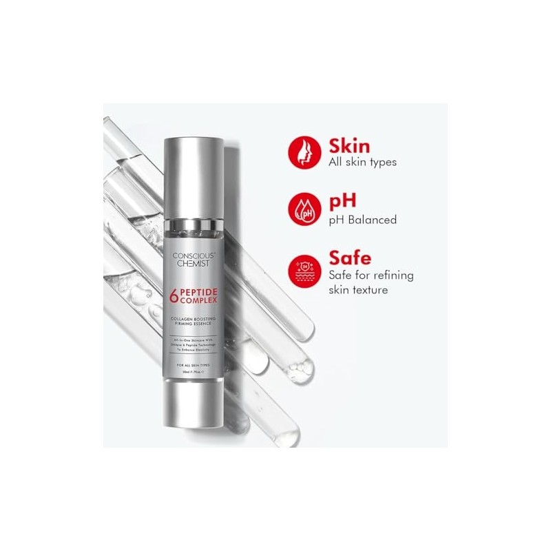 Conscious Chemist 6 Peptide Serum for Face | 50ml | Complex Collagen Boosting Firming Essence for Faces, Niacinamide & Hyaluronic Face Serum, Reduce Fine Lines, Wrinkles, FaceSerum for Men & Women