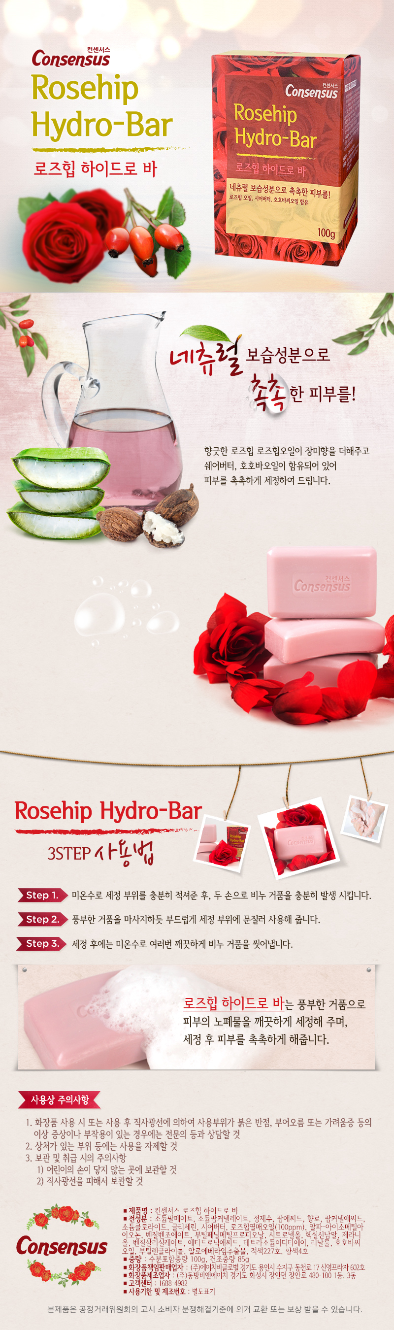 컨센서스 하이드로바 세안비누 로즈힙 100g x20개