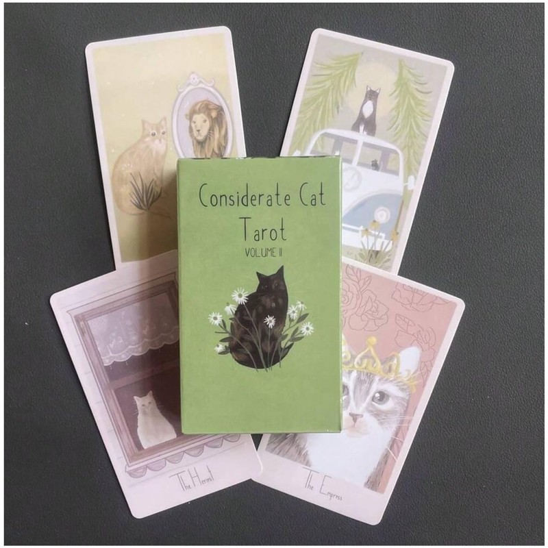 Considerate Cat Tarot Cards, 78 Card Fortune Telling Deck, Green Paper Box Set