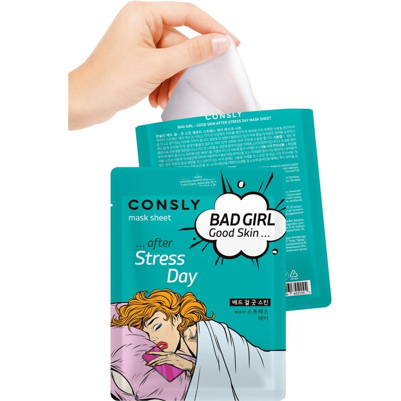 CONSLY_Bad Girl Good Skin Face Mask Set (4 pack), Hydrating and Revitalizing Mask Sheets for Tired, Stressed, and Dehydrated Skin, Bamboo Extract, Hyaluronic Acid, Snail Mucin, and Aloe