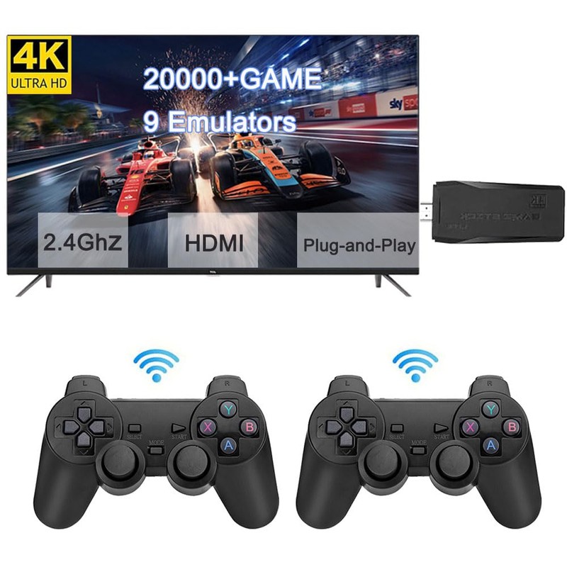 Consola de Videojuegos Retro,Game Stick 4K,Consola de Juegos Retro Inalámbrica 64G,Salida HDMI TV Videojuegos,Más de 20000+ Juegos Integrados,con Controladores Inalámbricos Duales de 2.4 G,Videojuego