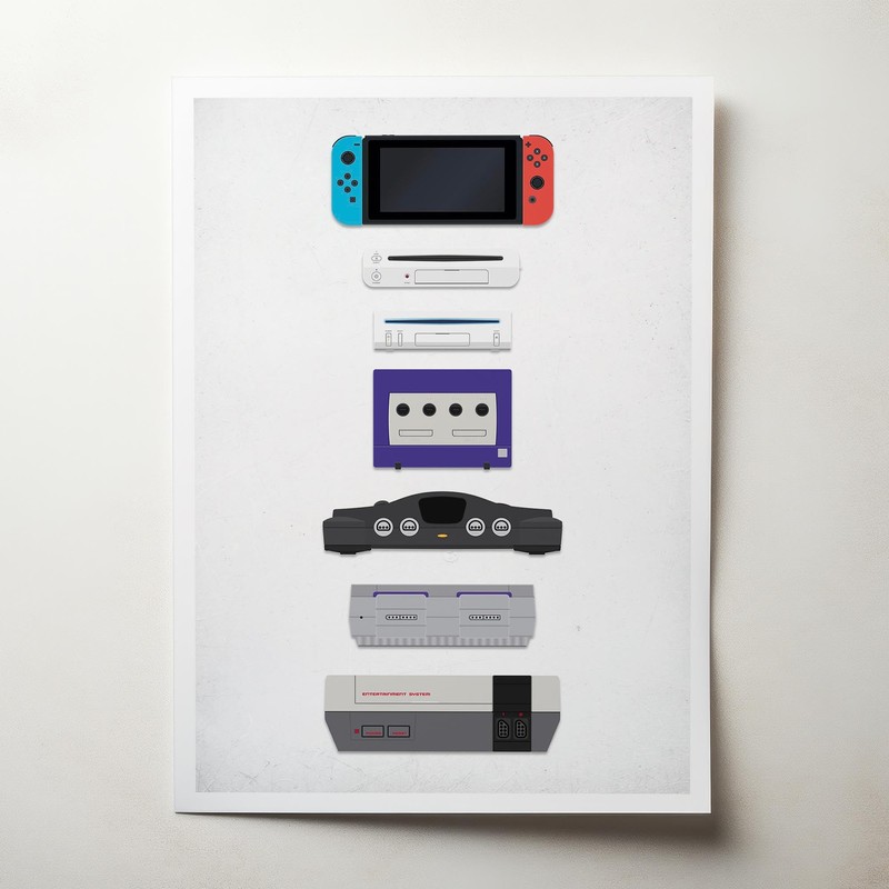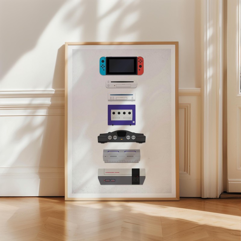 Console Evolution Video Game Posters Premium Giclee Fine Art Prints - Retro Gamer Wall Art Decor, Video Game Prints for Boys Bedroom and Home Decor, Ready to Frame