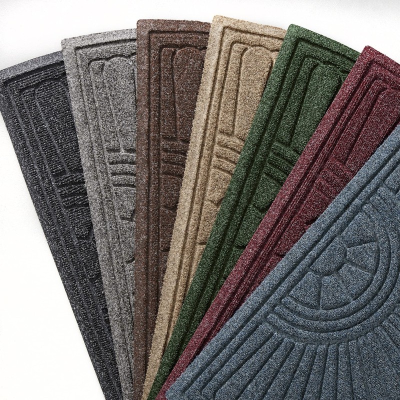 - This half moon/oval mat comes with a very environmentally friendly carpet top that features a premium 30 oz fiber made from 100% post consumer recycled PET drink bottles