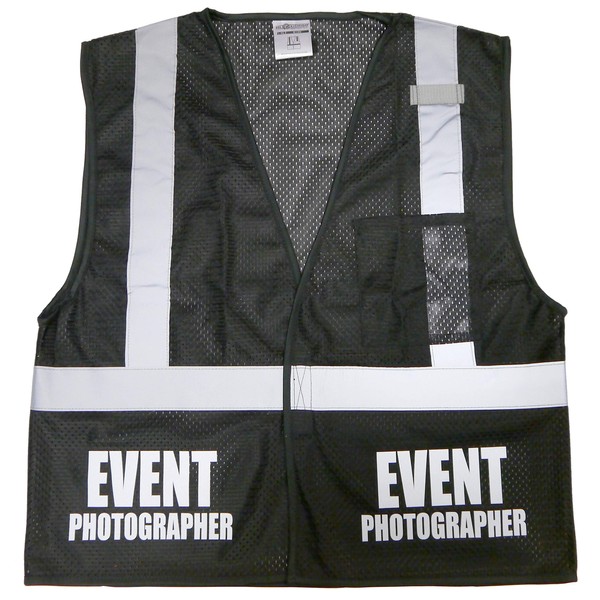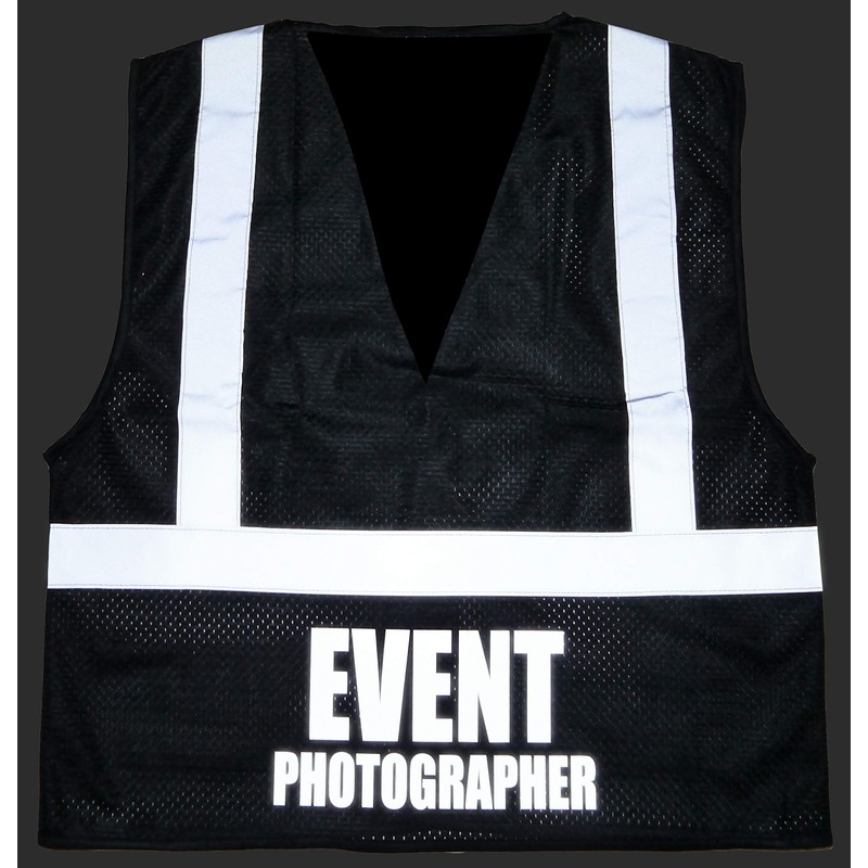 Conspiracy Tee Event Photographer Safety Vest, Black, Reflective Design, High Visibility Vest