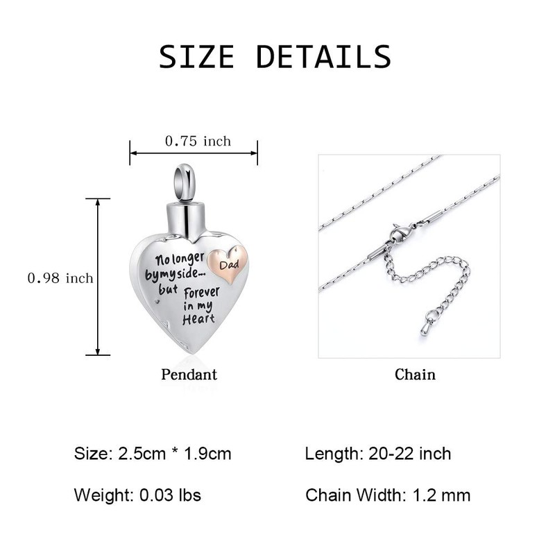 constantlife Cremation Jewelry for Ashes - No Longer by My Side But Forever in My Heart Heart Shape Pendant Memorial Urn Necklace Keepsake Gift for Women (Dad)