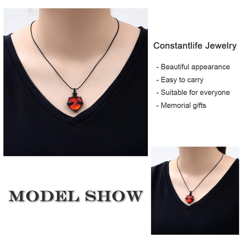 constantlife Crystal Heart Shape Cremation Jewelry Memorial Urn Necklace for Ashes, Stainless Steel Ash Holder Pendant Keepsake with Gift Box Charms Accessories for Women (Black+Red)