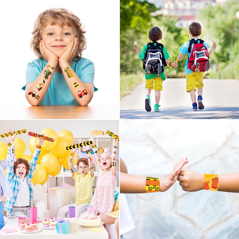 - Safe party gifts: party gifts for construction are made of durable, safe and environmentally friendly materials. Slap band is made of durable material inside and outside made of soft PVC material. It is comfortable, safe and gentle on children's skin.