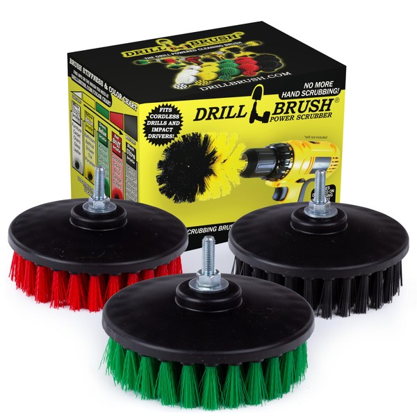 - Contractor grade Large 5 inch diameter brushes: Stiff Red, Medium Green, Ultra Stiff Black