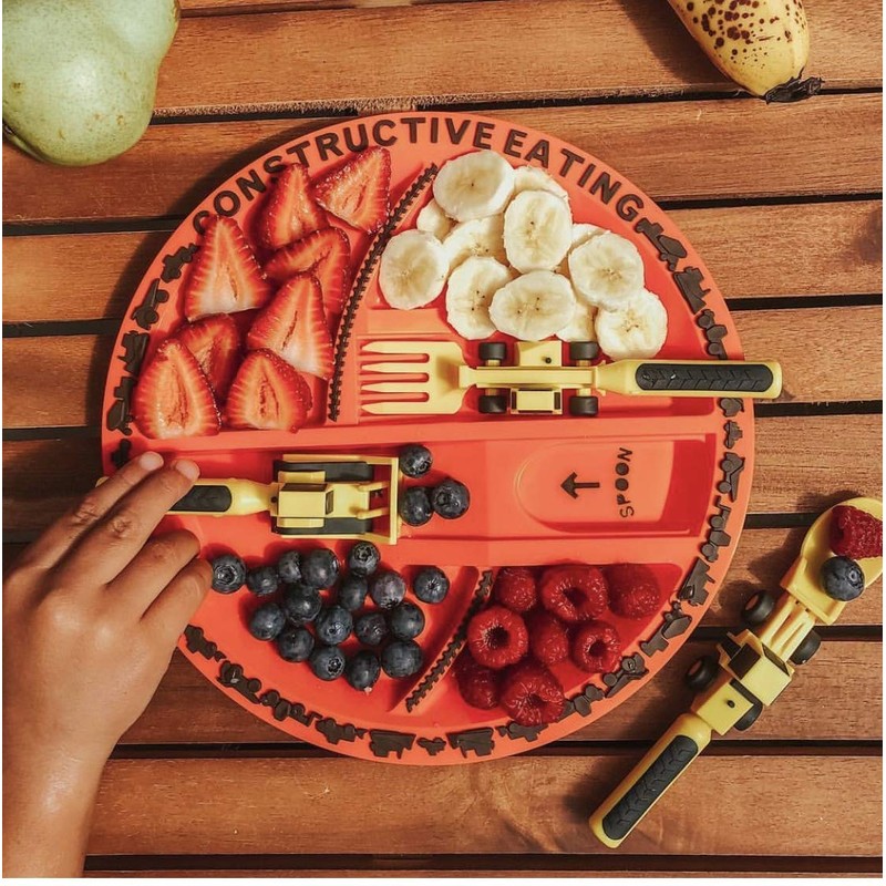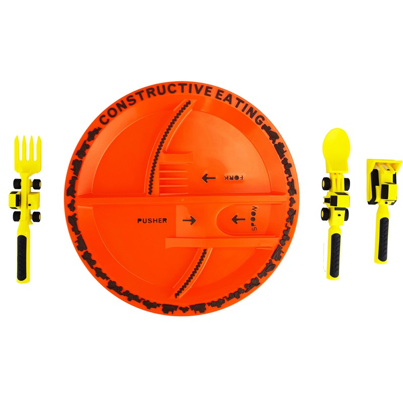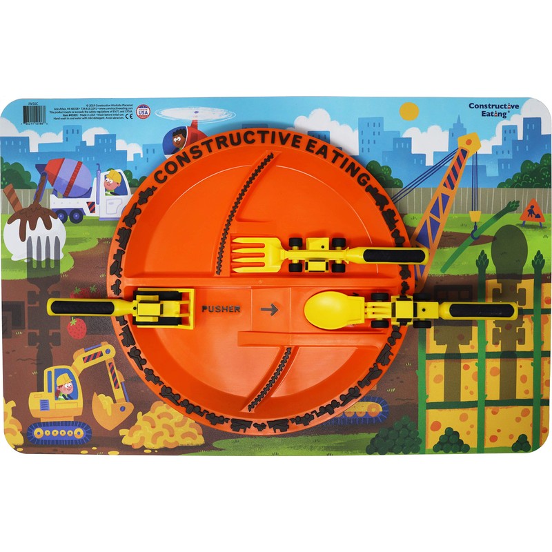 Constructive Eating Set of 3 Construction Utensils, Construction Plate and Construction Worksite Placemat