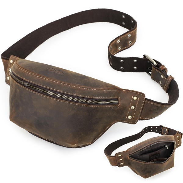 CONTACT'S レトロ カウハイドレザー マルチポーチ 男女兼用 大容量 胸元/腰付け アウトドア旅行に最適 スマホ・財布・鍵収納