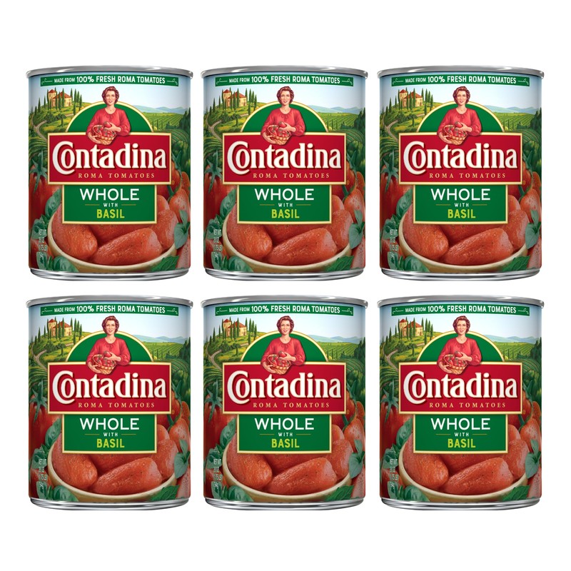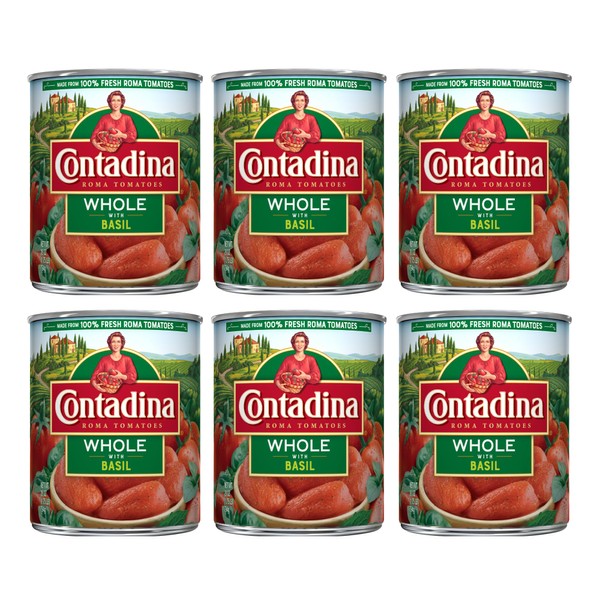 Contadina Whole Peeled Tomatoes with Basil, 28 oz (Pack of 6 Cans)