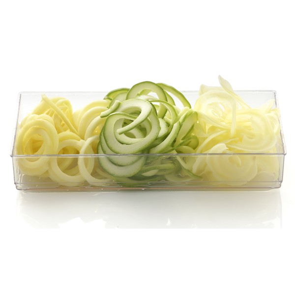 The container provides a great way to catch spiralized vegetables as they come out from your horizontal countertop spiralizer.