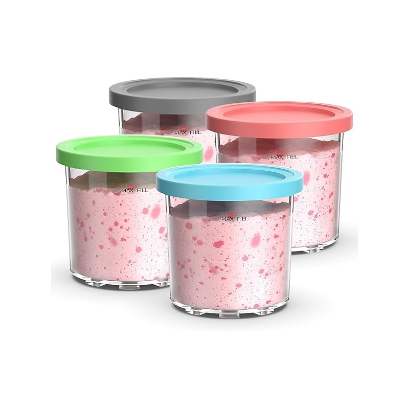 Containers Replacement for Ninja Creami Pints and Lids - 4 Pack,16oz Ice Creamy Containers Cups Jars Canisters Set Compatible with NC299AMZ & NC300s Series Ice Cream Maker- 4 Pack Pink Grey Blue