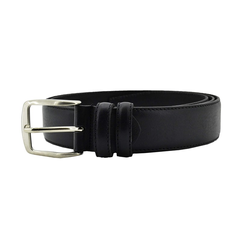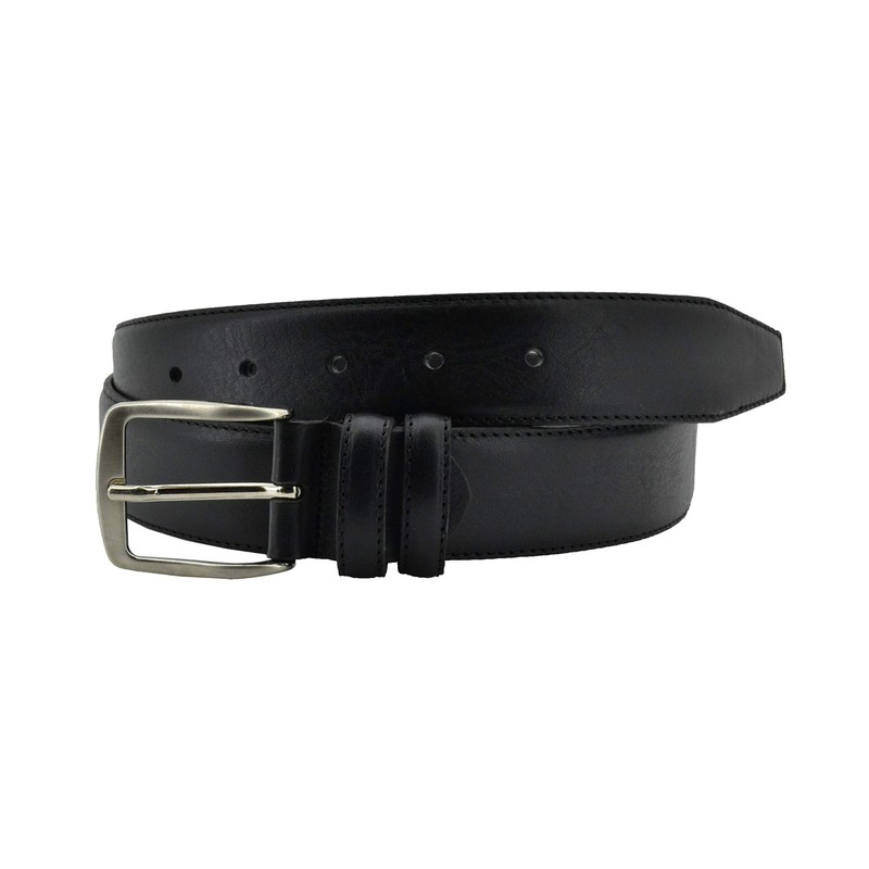 Conte Massimo Men's Genuine Leather Belt with Stitching, black