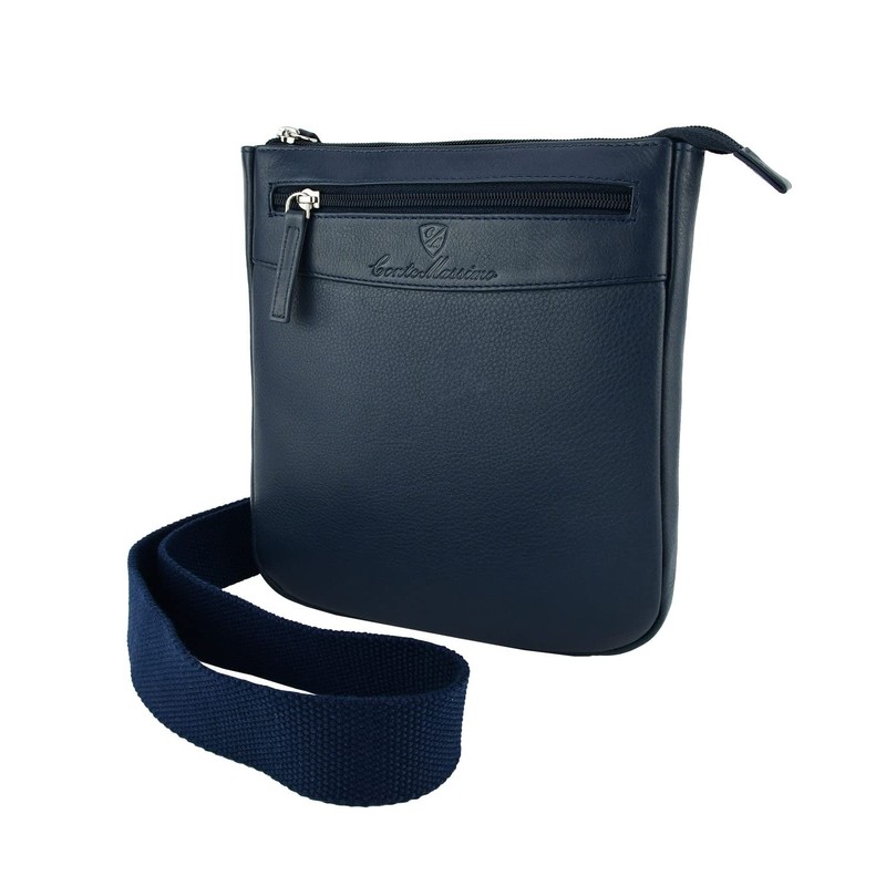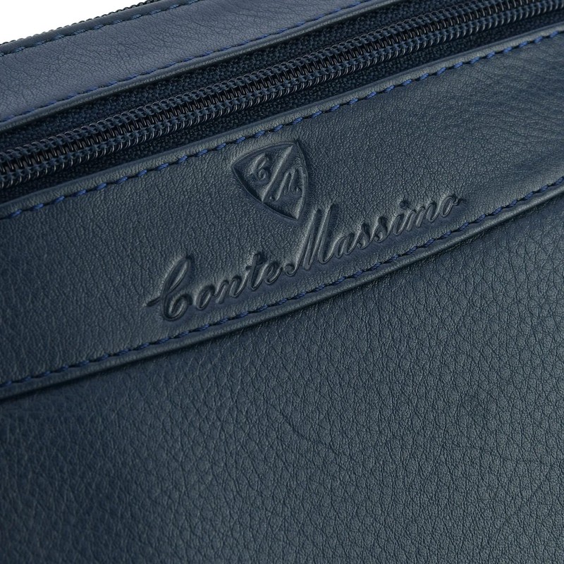 Conte Massimo Men's Leather Shoulder Bag with Adjustable Shoulder Strap, Multiple Pockets, Genuine Leather, Blue Medium 417