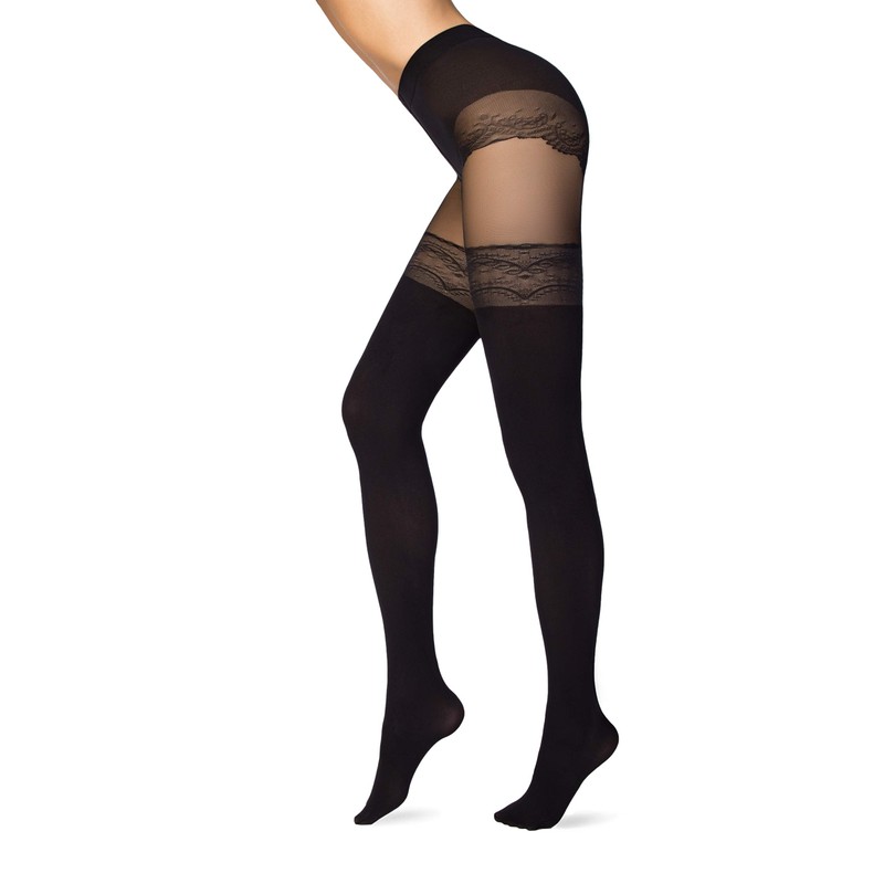 - Tights with immitation of stockings in a classic opaque black color.
