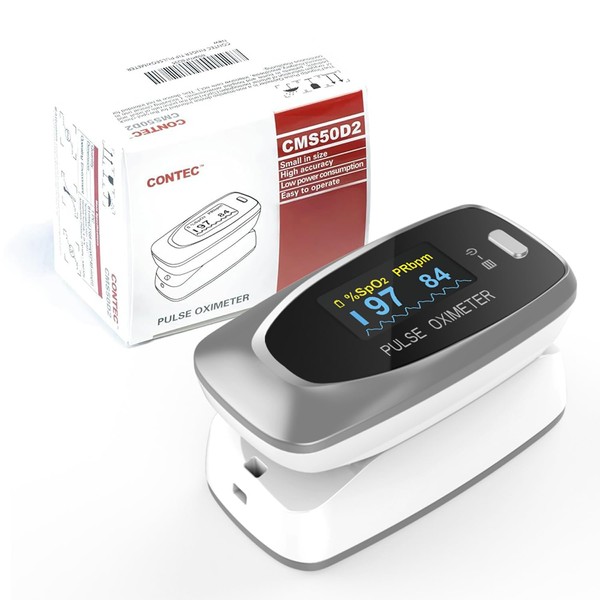 CONTEC Pulse Oximeter CE Certified CMS50D2 - MHRA Registered Blood Oxygen Saturation Monitor for Finger - Bright Colour Screen SpO2 & Heart Rate Display for Adults, Asthma & COPD Sufferers UK Approved