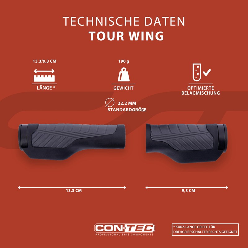 CONTEC Tour Wing Bicycle Grips 133/93mm D2 Dual Component Rubber Twist Grip Shifter Shock Absorption Washable Includes Clamping Rings Black Pair