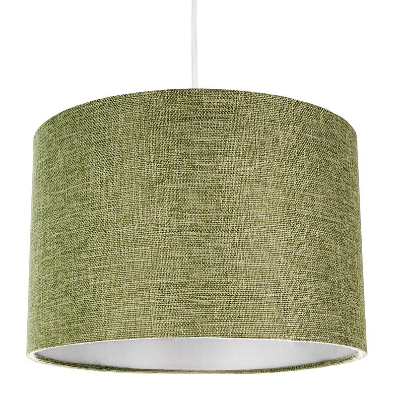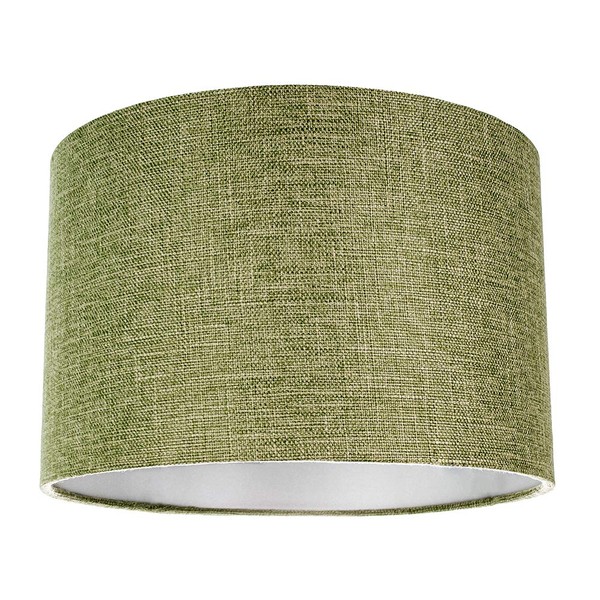 Contemporary and Sleek 12 Inch Olive Sage Green Linen Fabric Drum Lamp Shade 60w Maximum | 30cm Diameter | for Table Lamp or Pendant by Happy Homewares