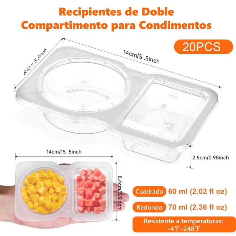 - 【Contenedor de Salsas 2 Compartimento】- Este práctico snack container une dos recipientes en uno, ideal para separar salsas, dips, frutas o snacks sin mezclarse. Perfecto para comidas escolares, picnics, restaurantes o viajes gracias a su diseño funcional y portátil.