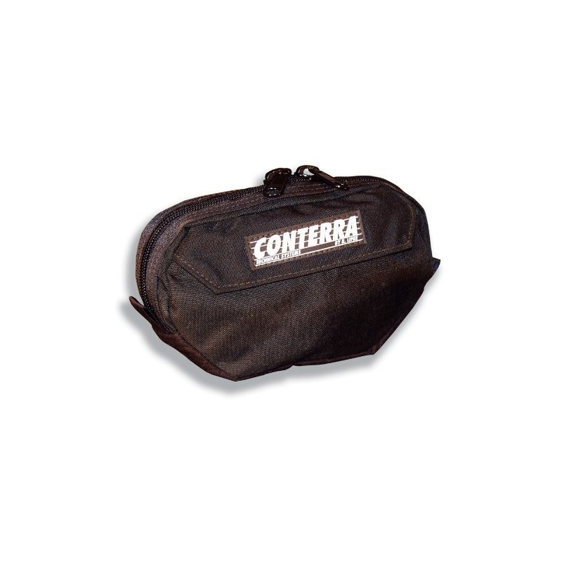 The Clip & Go pouch can attach to any of Conterra's products that have a waist belt, with a simple clip on either side. The zippered main pocket can hold a variety of items from body fluid protection to mini binoculars. The front rip and stick pocket holds small quickly needed items like keys, or exam gloves. This is a perfect addition to ski patrol aid belts or back packs. The clip system can be removed, and the Clip & Go can thread onto any strap 2 inches wide or less. The Clip & Go is made entirely out of CORDURA nylon, with YKK zippers and our legendary lifetime guarantee. Dimensions: 2.5” x 7” x 4” Weight: 3.2 oz