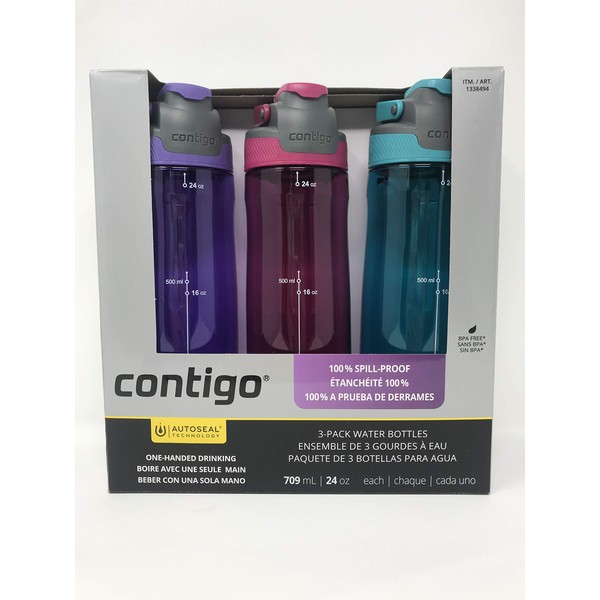 Contigo Auto Seal 3-Pack Water Bottles (Purple, Pink, Blue)