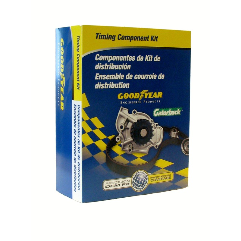 - Timing belt component kit includes: water pump, tensioner, timing belt