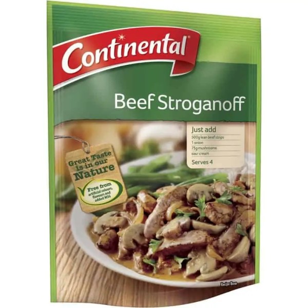 In just a few easy steps, create a delicious mid-week meal the whole family will enjoy, with the help of Continental. Enjoy this classic Beef Stroganoff with onions and mushrooms, and finished with sour cream for a rich creamy sauce. This dish is a perfect winter warmer, and with this delicious recipe base, itâ??s also really easy to make. All of our Continental Recipe Bases contain no artificial colours, flavours and added MSG, and are made with real ingredients, simply dried and combined to create a perfectly balanced flavour for your favourite dish. This Beef Stroganoff Recipe Base is made with real paprika, onions and tomatoes. All you need is beef, onion, mushrooms and sour cream to have dinner ready in no time. You can also add other veggies such as green beans for a tasty twist! And serve with creamy mashed potato or steamed rice. At Continental, we love food the way you do. We know how much you value good, nutritious, flavourful food, as well as authentic home cooking. It feels good to cook, and even better to bring pleasure to the ones you love, through the food you put on the table. For over 50 years now, our chefs at Continental have combined their expertise, love of flavour, and only the finest ingredients to help you create great tasting meals every day.