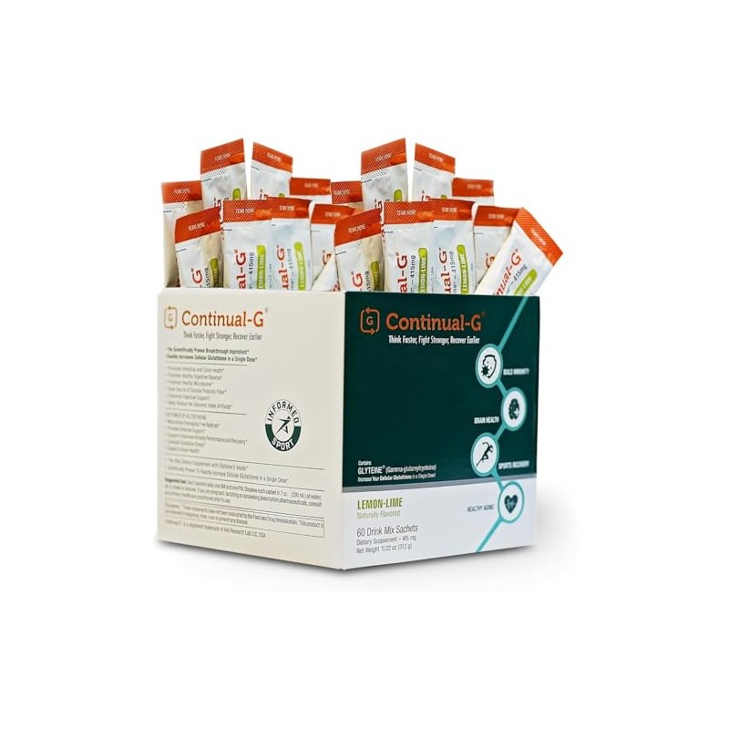 CONTINUAL - G CONTINUAL - G Glyteine 415mg Powder | Cellular Enhancing Glutathione Supplement | Support Liver Health | Supplements | 30 Days | Lemon Lime Flavor