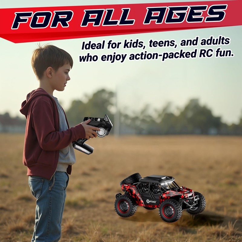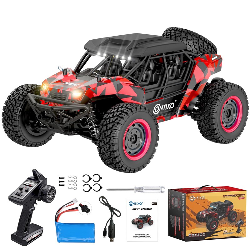 - ALL-TERRAIN POWER – The Contixo HC4A RC Car is built to conquer sand, grass, gravel, and rocky trails with its rugged 4WD system and heavy-duty tires. Whether you're climbing hills or racing through the backyard, this HC4A Remote Truck brings unmatched outdoor fun and control.