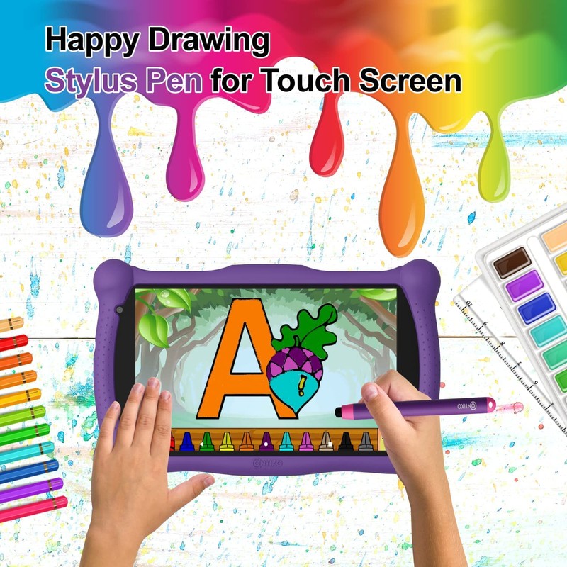 - Easier for Kids Hands & Tough: Contixo V10 Kids Tablet with kid-proof case is easy for young children from aged 3 to 10 to hold. Each side and edges are specifically designed to stay slightly above from the screen to protect the Contixo V10 Kids Tablet from the occasional “oops” moments. The Built in kick-stand enables hands free video watching. The Stylus is designed for Kids aged 3-10. Little hands will have an easy time using and controlling this tablet.