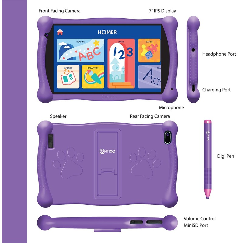 Contixo Kids Learning Tablet 7-inch IPS HD Display, WiFi, Android, 2GB RAM 16GB ROM Educator Approved Academy ($150.00 Value), Protective Case with Kickstand and Stylus, 2021 Edition, V10 Purple