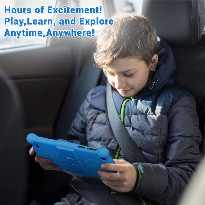 Powered by Android 11 Go OS and a 1.5GHz Quad-Core Processor, the Contixo tablet for toddlers 3-8 offers a smart learning companion with a 7-inch shatter-safe HD touchscreen display, dual cameras, and access to 189 language settings. With a robust 3,000mAh battery providing up to 6 hours of continuous use, expandable storage up to 128GB, and warrior-grade protection, including a 3-layer screen protector and protective case, the toddler tablets age 3-8 ensures durability and endless fun for young explorers. Designed with Parental controls, parents can select healthy and appropriate apps for their kids.