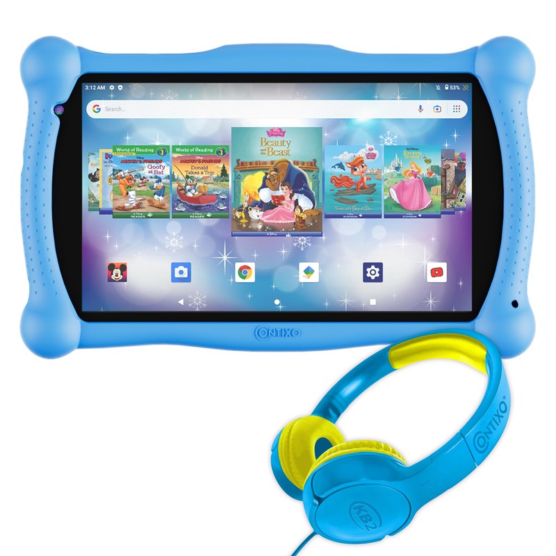 Contixo Kids Learning Tablet and Kids Headphone Bundle - V10 Android 11 Tablet with Stylus, 32GB Storage, Bluetooth, Dual Cameras, Parental Control, Tablet for Kids and Kids Safe Headphone