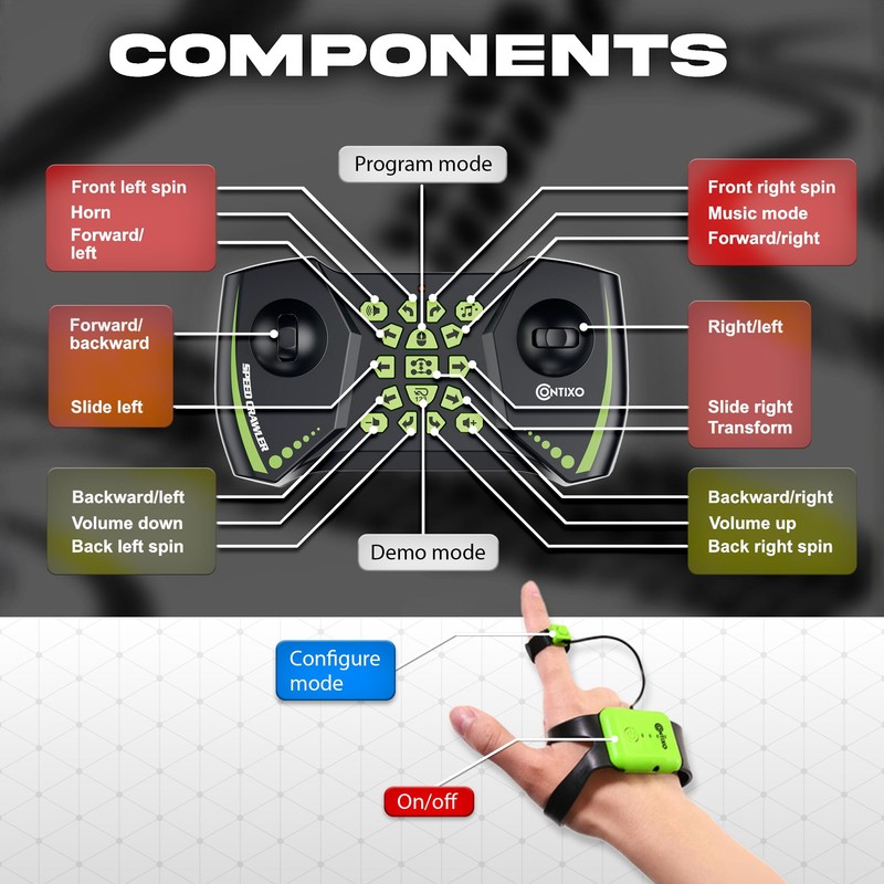 • GESTURE SENSOR TECHNOLOGY – Command the Contixo SC1A RC Car using intuitive hand movements through the wearable motion controller. This cutting-edge feature makes play more immersive, giving kids a futuristic, hands-free way to race and drift.