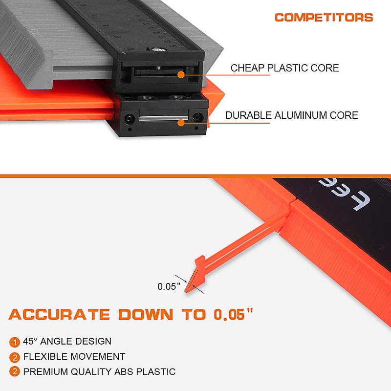 - 📏【Good Material & Dual Sides Scale Design】The scribe tool includes 1 × 5'' deepen contour gauge duplicator, 1 × 10'' deepen contour gauge tool and 2 x Hex wrench; The carpenter tools is made of high quality ABS plastic, high strength, rustproof and durable. The master outline gauge, layout profile tool has an inch and a centimeter scales on the dual sides to provide accurate readings.