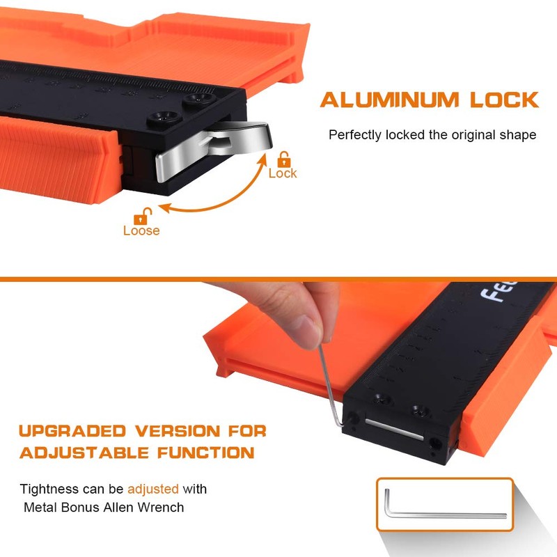 - 📏【Adjustable And Locking Feature】Feeke contour gauge lurui can adjust the tightness according to your needs. It’s very to use, just press angle measuring tool on one of the shapes, once object has been contoured, lock contour gauge teeth in place for perfect traces every time.