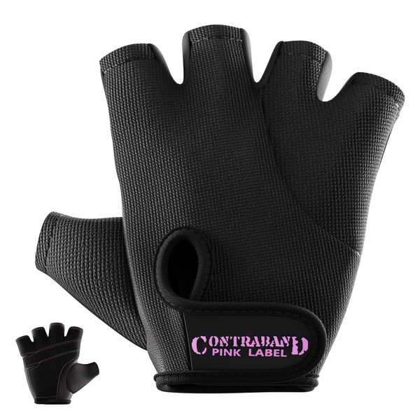 Contraband Pink Label 5057 Classic Weight Lifting Gloves for Women | Workout Gloves for Women w/Leather Palm | Gym Gloves w/Light-Medium Padding | Fingerless Weightlifting Gloves (Black, Small)