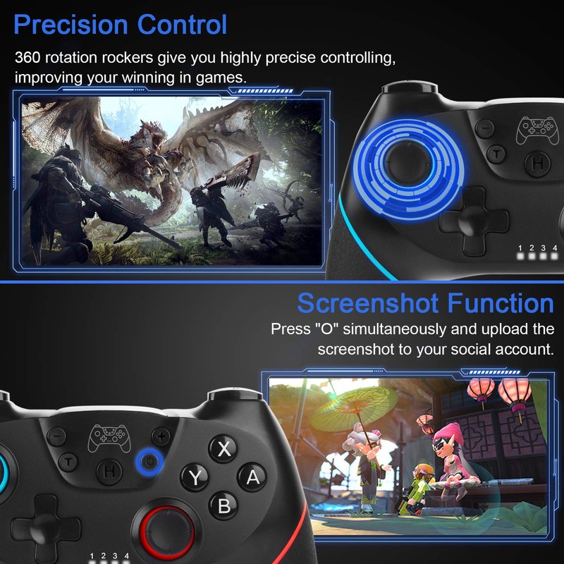 - ALTA COMPATIBILIDAD - Adecuado para la plataforma de host Switch. Este producto adopta la tecnología inalámbrica Bluetooth, que se puede controlar de forma remota y es fácil de operar. Se puede usar para Switch host / nivel de entrada x Juegos de PC que también son compatibles con PC y soporta el control de la mayoría de los juegos.