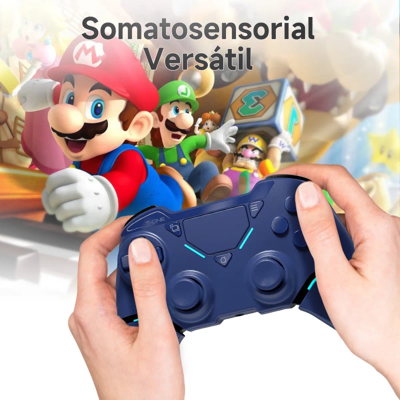 Fabricado con materiales antideslizantes y resistentes al sudor y con una forma ergonómica para caber cómodamente en la mano, este mando garantiza un control sencillo y largas sesiones de juego sin fatiga. El agarre cómodo y los botones de respuesta hacen que cada momento de juego sea agradable.