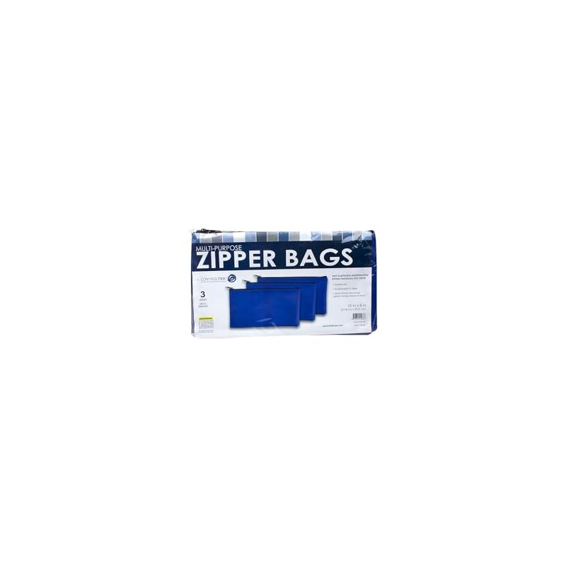 CONTROLTEK Fabric Deposit Bag, Vinyl, 5.5 X 11, Blue, 3/Pack
