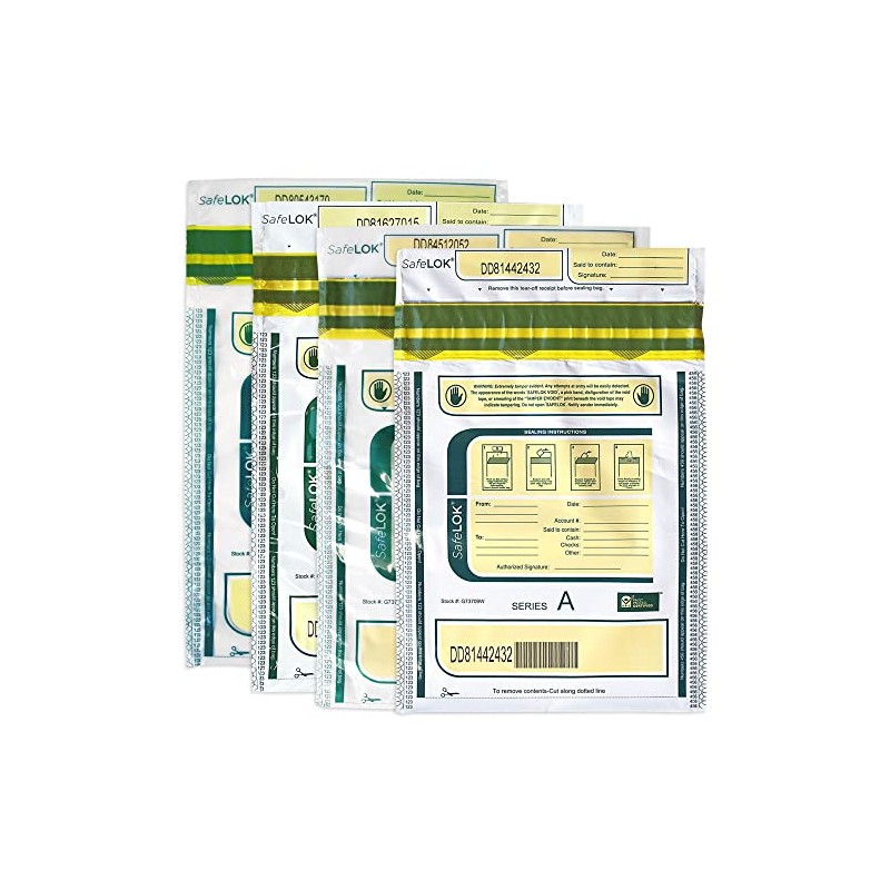 - Large serial numbers and barcodes provide easy tracking of these bank deposit bags via CCTV, making SafeLOK the most secure option for transporting cash. Each bag has a unique tracking number for security controls with a tear-off receipt.