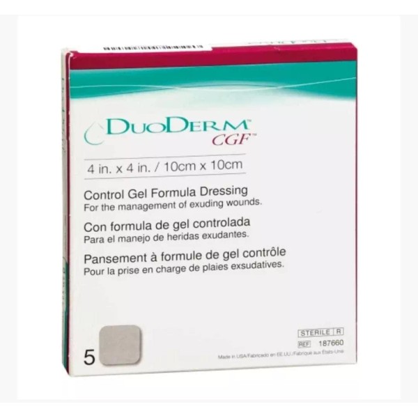Cada compra equivale a una caja de 5 apósitos DuoDerm CGF 10x10 cm.