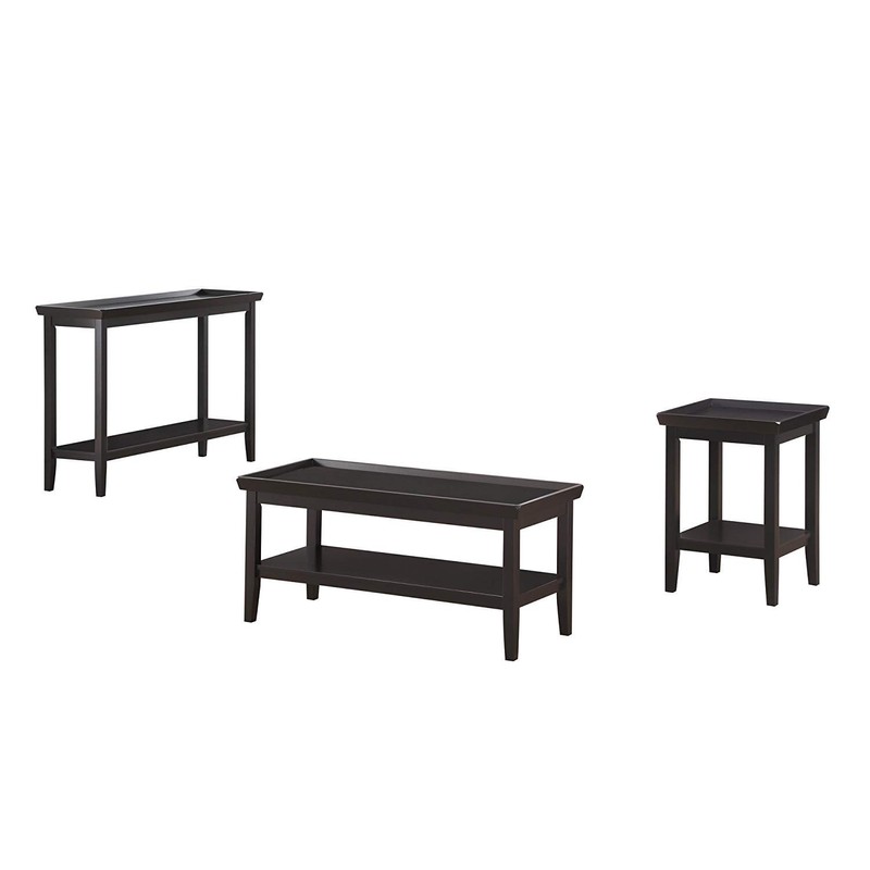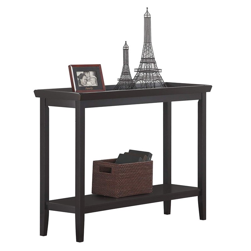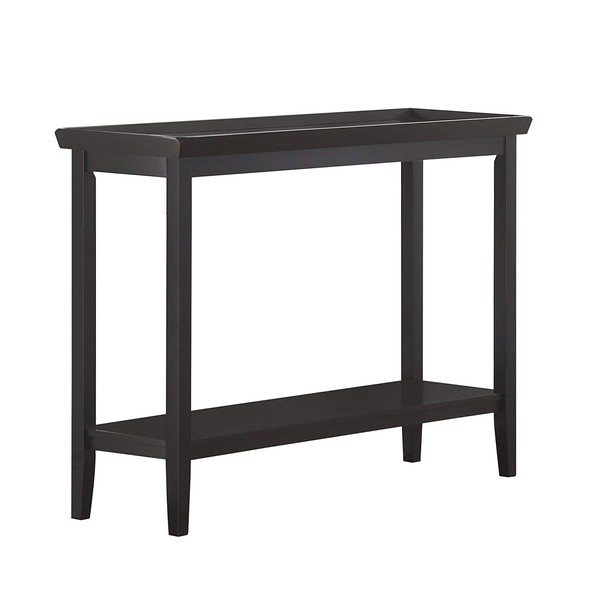 The simple yet charming look of the Ledgewood Console Table by Convenience Concepts offers a practical solution for any home. The traditional contemporary style is sure to refresh your home decor. Beautifully crafted from solid rubberwood and MDF that is finished with a rich rubberwood veneer, this piece will stand up to any occasion. The tray-like tabletop will keep your belongings safely and securely on the table without any worries of your favorite vases or family photos falling off the edge. Also featuring a bottom shelf where you can display your favorite collectibles or keepsakes for a more personalized touch. This two-tier unit makes a great addition to nearly any room in your home, including an entryway, living room or home office. Clean lines paired with the tapered legs give this rectangle table a timeless look. Available in multiple finishes this hall piece will easily become a staple in your home. Look for additional items from the Ledgewood Collection by Convenience Concepts to complete the look today! Each sold separately.