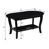 The American Heritage Oval Coffee Table with Shelf is the perfect spot to gather around with friends or family. This spacious oval-shaped table by Convenience Concept offers plenty of room for to play a game of cards or for snacks while watching Sunday football. The oblong silhouette features slightly curved legs and a bottom shelf. Ample space is available to display beautiful centerpieces or keep entertainment essentials close by. Each tier is built from manufactured wood while the sturdy legs are built from solid wood. Beautifully finished with an elegant veneer, this oval table is sure to last. Assembly is simple and requires 3 easy steps. Coordinate this charming table with matching pieces from the American Heritage Collection, each sold separately.