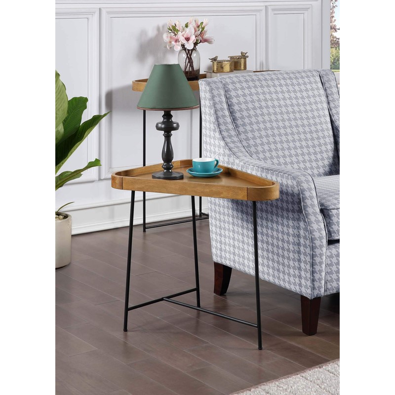 Nostalgia meets todays modern take on this unique Lunar Triangle End Table by Convenience Concepts. The versatility of this table adds a retro style that can be used as an end table or a wedge table. The Lunar Triangle End table has a sturdy powder coated iron base which is highlighted by rigid hairpin-style legs. Crafted from MDF and finished with a solid birch veneer, the Lunar Triangle End Table is built to last. Minimal assembly is required and is available in multiple finishes. Shop the whole Lunar Collection by Convenience Concepts, each sold separately.