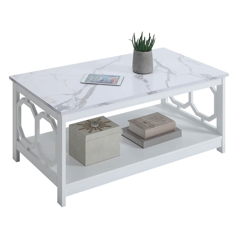 Convenience Concepts Omega Coffee Table with Shelf, White Faux Marble/White